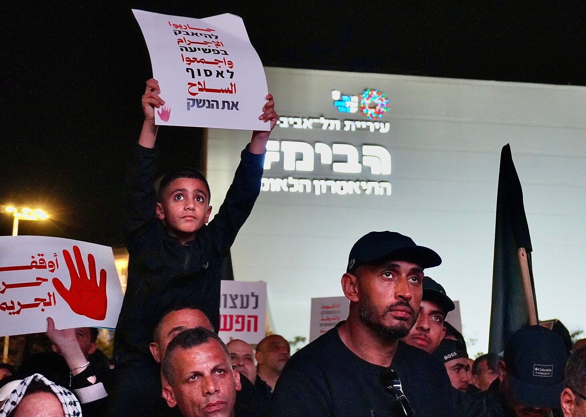 The protests have adopted visual symbols of solidarity and protest. Black flags, representing the burgeoning movement against crime in Arab communities, were prominently displayed. Some protesters carried signs reading “Arab Lives Matter