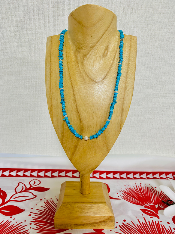 Arizona turquoise chip and freshwater pearl necklace Necklace/Pendant NAOLINO Online Shop | Creema 18195598