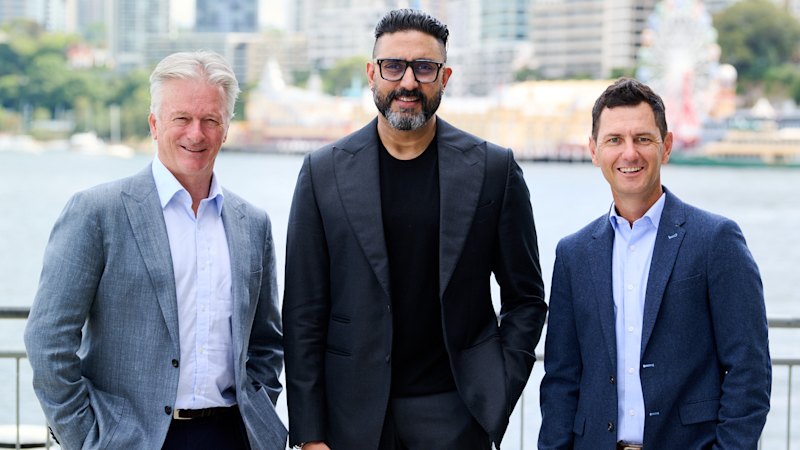 Cricketing great Steve Waugh, left, bollywood star Abhishek Bachchan, and hockey champ Jamie Dwyer.Credit: AFR