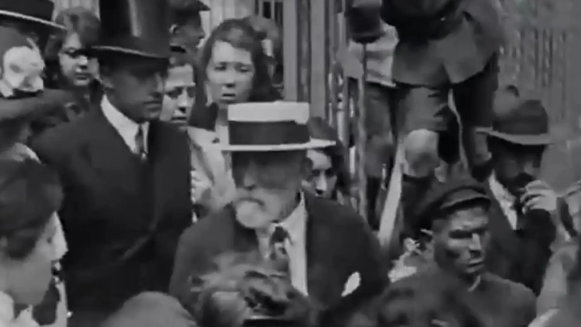 In his thread, Jan X. C., less cautious than Artigas, compares the few frames with various photographs of the architect, traces lines outlining his nose and shoulders, and concludes that the man in the boater hat and white beard is Antoni Gaudí.