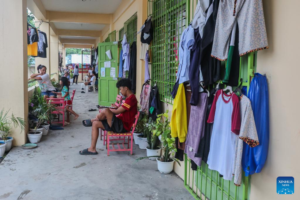 People are seen at a temporary shelter converted from a school as Mayon Volcano experiences eruptions in Albay Province, the Philippines, Jan. 21, 2026. (Xinhua/Rouelle Umali)