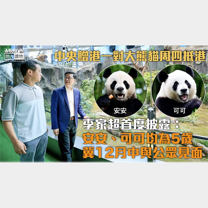 Chief Executive Li Jiachao announced the arrival of the giant pandas and revealed that the male panda’s name is “An An” and the female panda is named “Ke Ke”. The Culture, Sports and Tourism Bureau will hold a ”territory-wide naming campaign” in October, and a large-scale painting competition will also be held later.