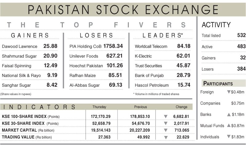 Karachi – The Pakistan Stock Exchange (PSX) experienced its most significant single-day decline in history on Thursday, , as mounting geopolitical tensions and rising global oil prices triggered a widespread sell-off. The benchmark KSE-100 index closed at 172,170.29, down 6,683 points, or 3.74%, wiping out approximately Rs713 billion in market capitalization during the first session of Ramazan.