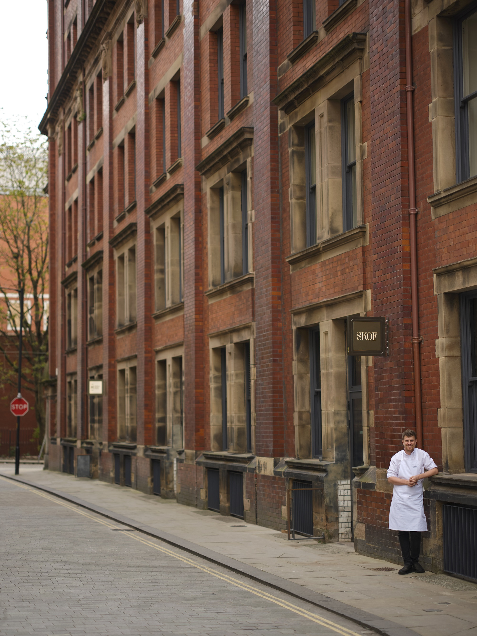 Lay out the chicken skin on greaseproof paper, season with salt, cover with another sheet of paper and place another tray on top of the chicken skin to keep it flat. Cook at 165 degrees for 45 minutes. Once finished, leave to cool.
